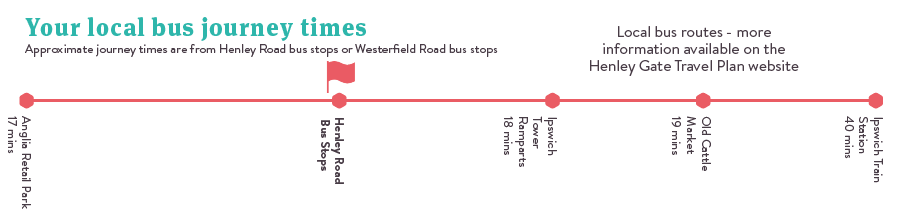 The closest bus stops to Henley Gate are located within a 10 minute walk along Henley Road. Your main local bus services are service numbers 7, 116, 118/119 operated by First Bus and Ipswich Buses. Service 7 and 116 run along Henley Road, providing links to Ipswich town centre, Anglia Retail Park, Debenham and more.
